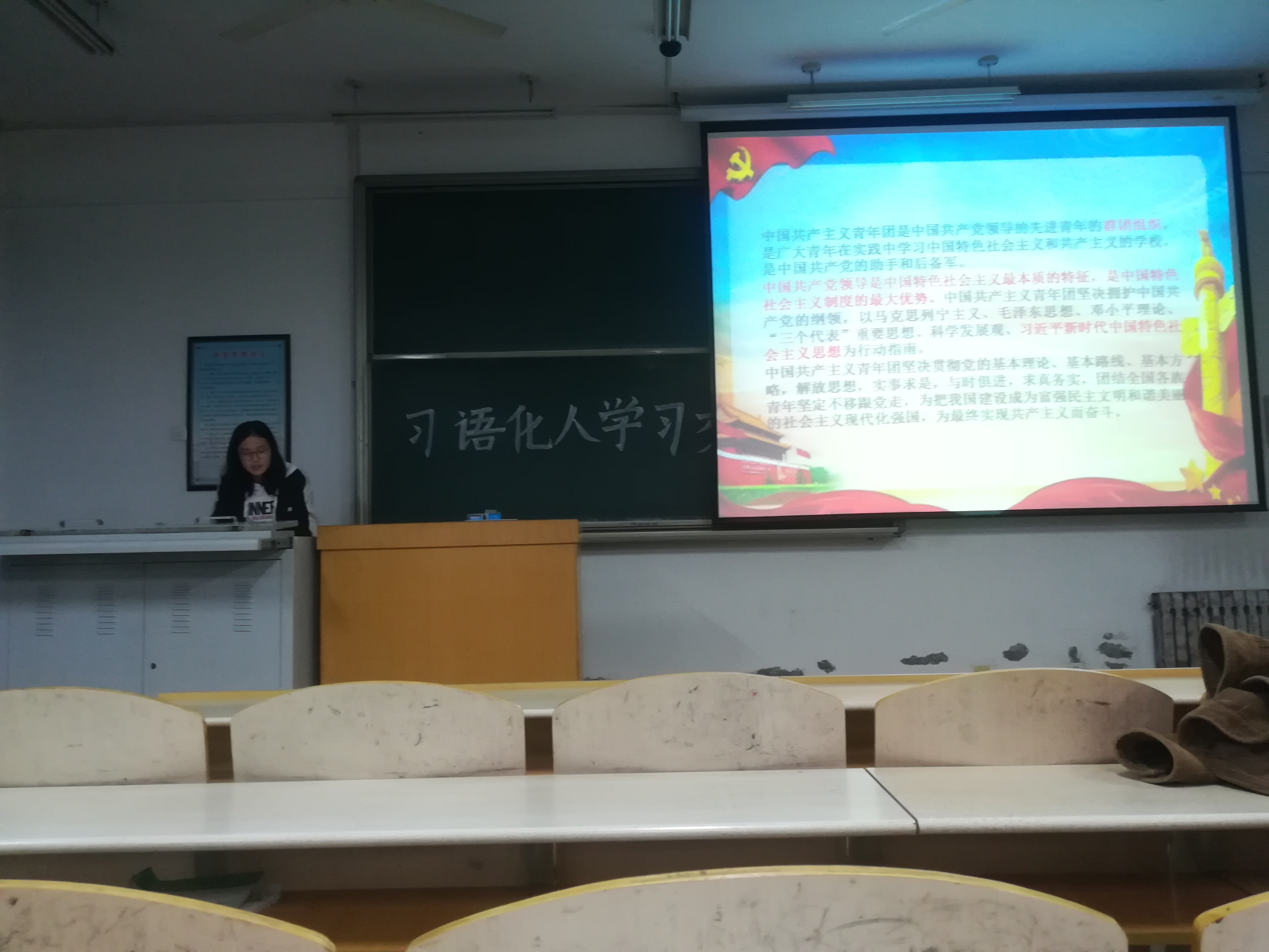 在深入学习习近平总书记的语录之后,由团支书邢淼同学带领大家一起学习了团章,她讲到共青团员是中国共产党的助手和后备军,作为新时代的青年,要时刻牢记使命,不忘初心跟党走。最后,赵传华老师希望大家坚持以习近平新时代中国特色社会主义思想作为指导,以学习为第一要务,腹有诗书气自华,在课余时间能够以博览群书来沉淀心灵,为新时代注入新动力。伴随着激烈的掌声,交流会圆满结束。