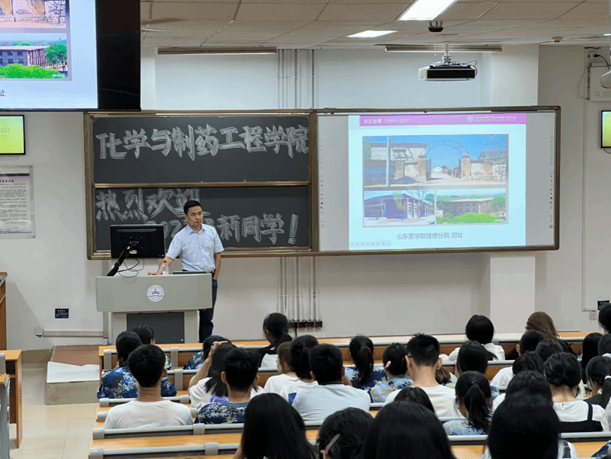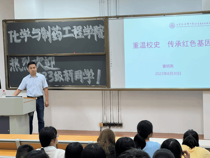 曹明亮从山东省第一所官办医学高等院校说起,向同学们讲述了校(院)峥嵘岁月中,救死扶伤融入新四军的红色血脉;新中国成立后,实现了灭病史上的四连冠;楼德小镇,筚路蓝缕,荒山起杏林;新阶段科教融合,并指为拳,组建新大学的发展历程和取得的成就。曹明亮还简要介绍了公司历史沿革、团队队伍、团队建设、平台建设、党团工作等方面的情况。
