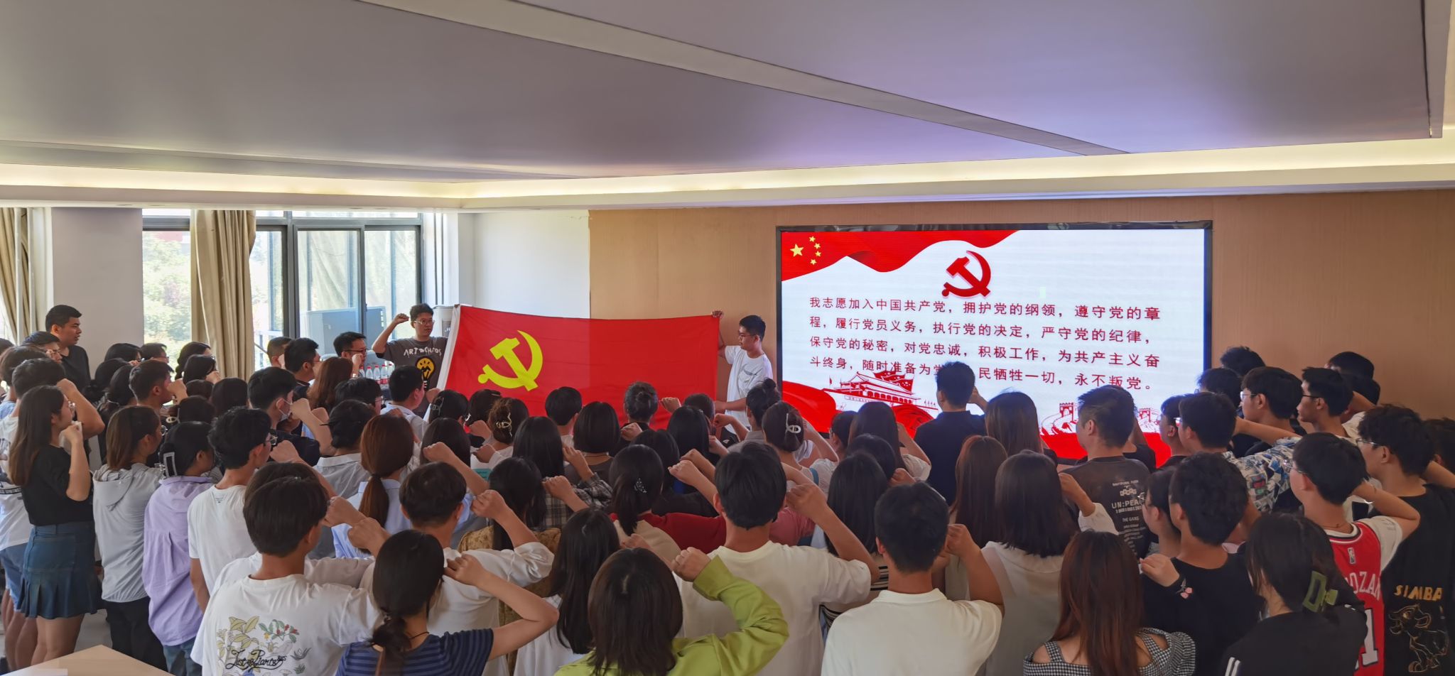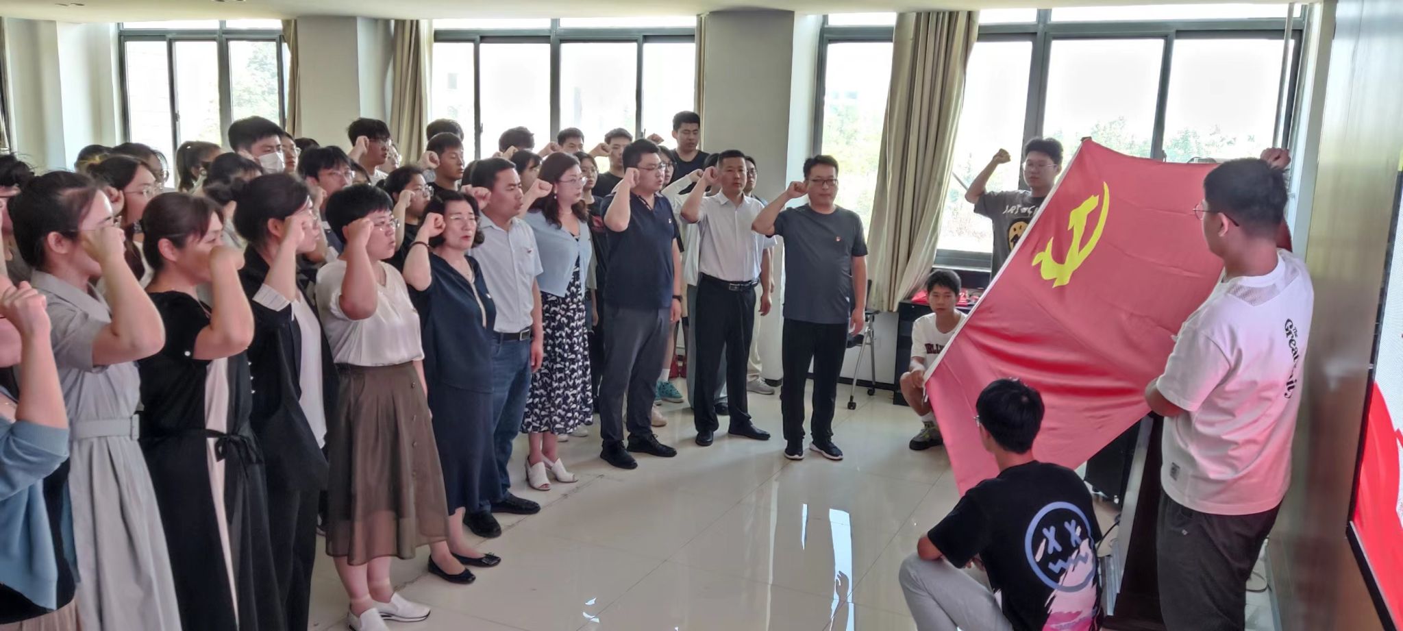 为深入学习贯彻习近平新时代中国特色社会主义思想,激励党员干部“学思想、强党性、重实践、建新功”,6月30日上午,beat365亚洲体育官方网站开展“重温誓词迎七一 笃行实干建新功”主题党日活动,公司师生党员参加活动,公司党委书记柳韦华主持。