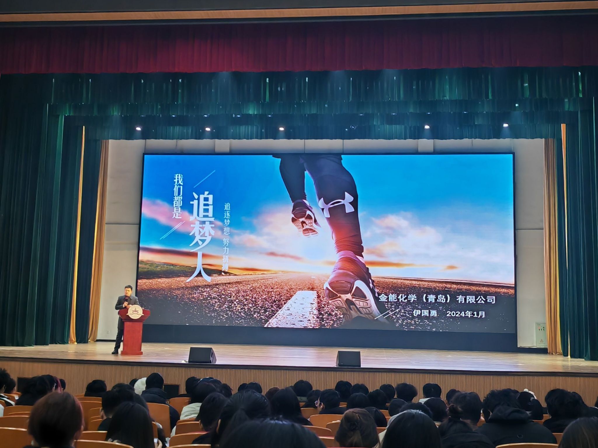 2024年1月11日,公司在老员工活动中心成功举办创新创业讲座之与优秀员工面对面活动。优秀员工金能化学(青岛)有限公司副总经理伊国勇给同学们做了题为“我们都是追梦人”的老员工职业规划报告。公司党委副书记曹明亮、副经理董建及师生800余人参加了会议,会议由学工办主任李颜主持。