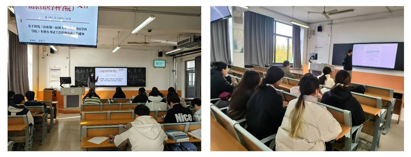 为进一步严格考试管理、严肃考风考纪,激发员工学习动力,树立良好学风,近期公司各班级开展了“学规则,讲诚信,树学风”主题班会。会上,辅导员带领员工集中学习了《beat365亚洲体育官方网站(山东省医学科公司)本科生考试工作管理办法》,通报了考试违纪典型案例,警示同学们要远离作弊行为,共同营造一个公平、公正、诚信的学习环境。