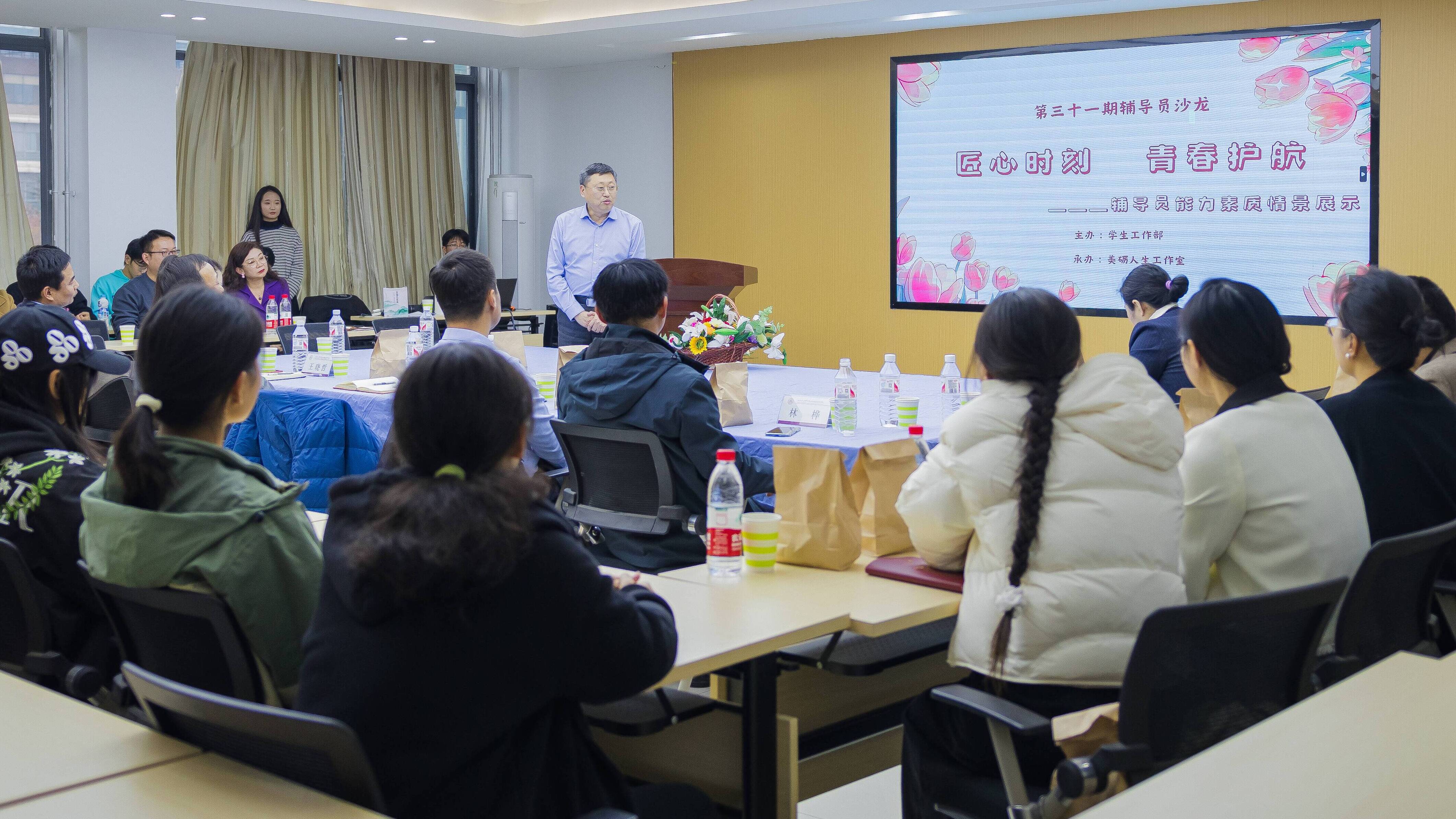 12月6日下午,美砺人生辅导员工作室举办“匠心时刻 青春护航——辅导员能力素质情景展示”沙龙。活动在beat365亚洲体育官方网站436会议室举行,校(院)员工工作部部长谭桂明、公司党委书记史仁玖、各院系辅导员代表参加了活动。