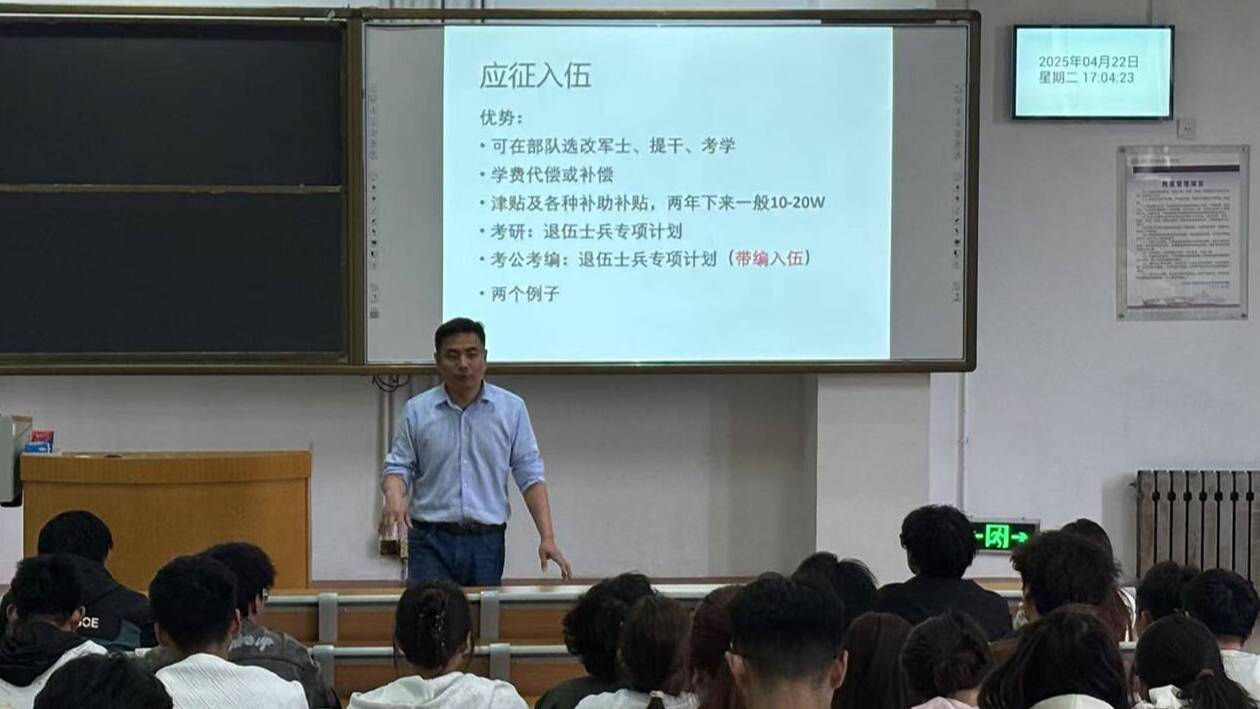大班会上,曹明亮通过近三年毕业生考研、考公考编、求职就业、参军入伍、参加志愿服务西部计划等不同发展路径的分析,详细解读不同发展方向的趋势特点、适用群体及实现路径,为各年级员工提供科学参考。班会上还共同学习了校(院)《本科生考试工作管理办法》、《员工违纪处理办法》等管理规定,以及涉及考试违纪问题的处分通报。