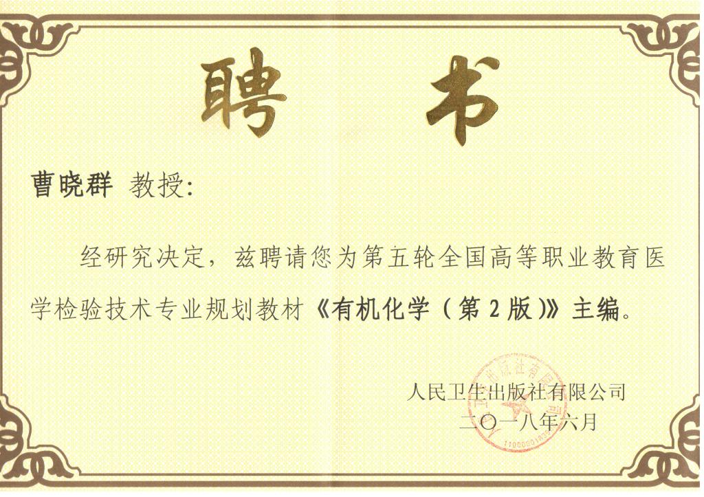 6月25至27日,全国第五轮高等职业教育医学检验技术专业规划教材主编人会议在杭州召开。本轮确定医学检验技术专业规划教材共19部,从全国110多所公司和医疗机构遴选产生主编、副主编。我院曹晓群教授被选为《有机化学》教材主编。