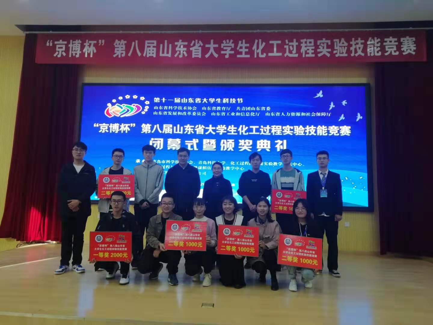 11月27至31日,“京博杯”第八届山东省老员工化工过程实验技能竞赛在青岛科技大学举行。beat365亚洲体育官方网站员工王锦涛、陈永政、甘志旭、胡丽琪、孙凤蕾等30名员工组成的10个代表队获得优异成绩,成功斩获一等奖1项,二等奖3项,三等奖6项。