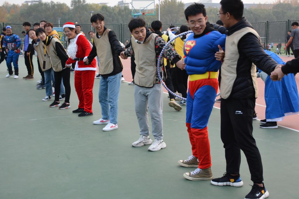 活动开始前,各代表队现场介绍各自团队并进行了富有特色的团队展示。首先进行的是热身游戏“爱的抱抱”和大型集体舞表演,传递了友善团结的正能量;“无敌风火轮”仿佛彩虹飘荡在大地上,展现了老员工们蓬勃向上的活力;“袋鼠跳”的比拼展现了各团队强健的身体素质和奋勇争先的精神;“瞎子背瘸子”考验参赛者的平衡能力、体力,和团体的默契配合;“巨人脚板”的队员们肩并肩,手挽手,齐心协力向终点共同迈进,精彩的表现博得现场观众阵阵喝彩;“传呼啦圈”和“夹球跑”两个游戏,由师生共同组队参加,老师们与员工默契合作,个个身手不凡,在阵阵掌声和欢笑声中,师生关系更加融洽和亲密;“托球跑”象征了我们会克服人生道路上一个又一个困难和挫折,拥抱更加美好的明天。