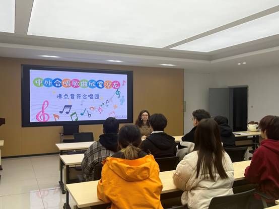 2023年11月20日晚,沸点音符合唱团在综合楼438会议室举办了一场中外合唱歌曲欣赏沙龙。本次活动旨在推广合唱艺术,建设优秀校园文化,同时也是为了满足校园合唱爱好者的需求。