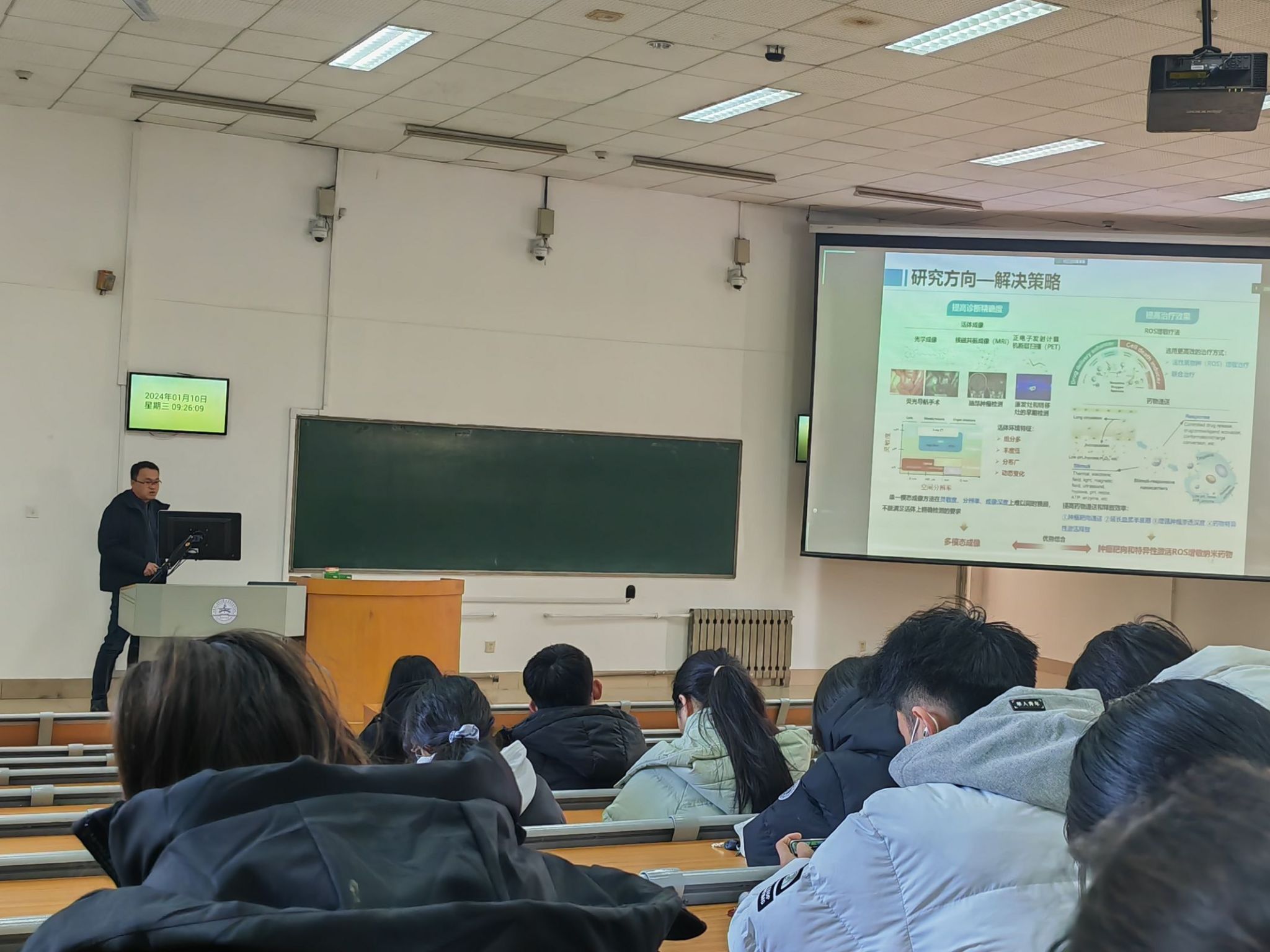 安瑞冰博士首先介绍了他的个人经历,并分享了在化学专业教育和工作中的成长经历。这对于同学们理解学术研究的重要性以及在化学领域追求学术生涯的过程都具有非常有价值的启发。接着,安瑞冰博士详细介绍了自己的研究背景,并结合研究成果,分享了如何通过化学方法构建新型诊疗探针以实现癌症的精准诊疗。通过深入讨论这些内容,安瑞冰博士为同学们呈现了一个更全面、深入的图景,使他们更好地理解了化学在癌症领域中的重要性,并在学术研究和职业发展方面提供了更多启示。