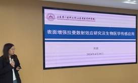 在本次学术活动中,蒋如剑(骨干人才)和周露(骨干人才)两位高层次人才做了学术报告。蒋如剑博士的学术报告基于生物医用材料的生物惰性可能诱发的免疫排斥和慢性炎症以及术后的细菌感染等问题,展开植/介入类材料表面微纳尺度拓扑结构研究,探究物理化学性质等因素与宿主之间的互作效应,并在仿生纳米结构杀菌-促成骨PEEK、自适应Janus仿生抗粘-促愈合疝气补片等植入材料和器械开发取得了一定进展。周露博士的学术报告基于表面增强拉曼散射(Surface-enhanced Raman Scattering, SERS)基底的不易调控、难以满足不同环境的需求等问题,展开多种高性能SERS基底的自主设计和构建。通过对所制备的SERS基底施加光辐照或栅极电压,实现其SERS性能的主动调控,并在食品安全、化学反应监测以及生物医学传感等领域得到广泛应用。同时两位博士就老师们提出的问题进行了解答和互动探讨。