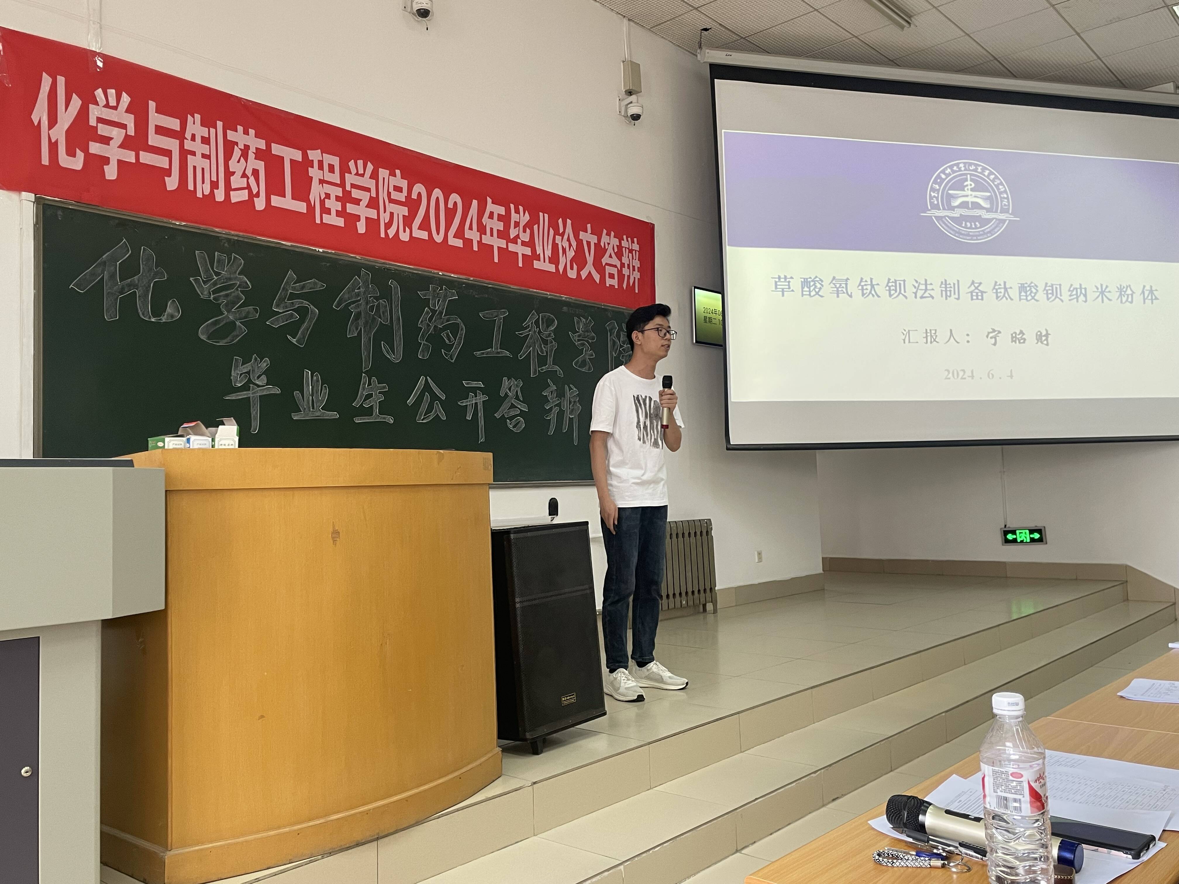 2024年6月4日上午,公司2024年本科毕业设计(论文)公开答辩在教学南楼C2017成功举行。2020级制药工程、环境工程、高分子材料与工程、应用化学和化学工程与工艺5个本科专业各推荐一名同学参加公开答辩。答辩委员会由公司学术委员会成员组成,赵晓民教授担任答辩委员会主席。本次公开答辩会由董建副经理主持,指导教师代表及2024届全体毕业生出席了答辩会。