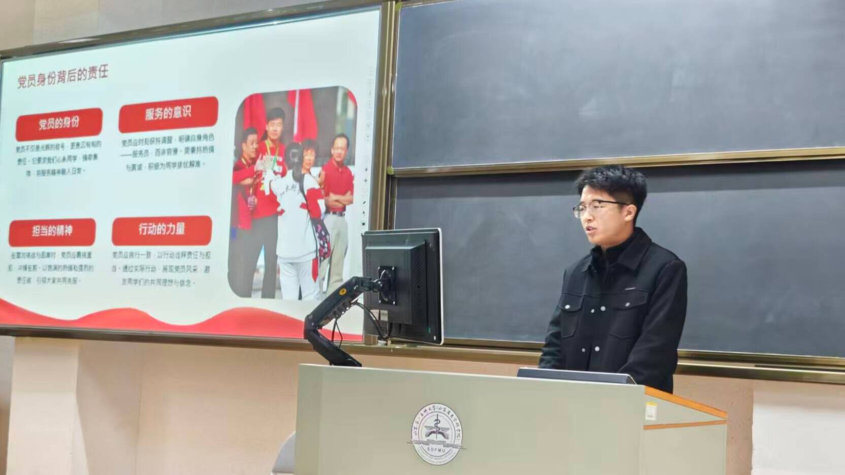 活动中,员工党员代表王志晨、曹凯、宋晓杰依次发言。他们结合入党经历,围绕学业成长、宿舍规范、责任担当等内容,分享了作为一名党员如何在日常学习生活中严于律己、优化宿舍环境、积极带动身边同学共同进步的心得体会。真挚的讲述引发了现场同学的广泛共鸣,进一步激发了大家向党组织靠拢的热情。