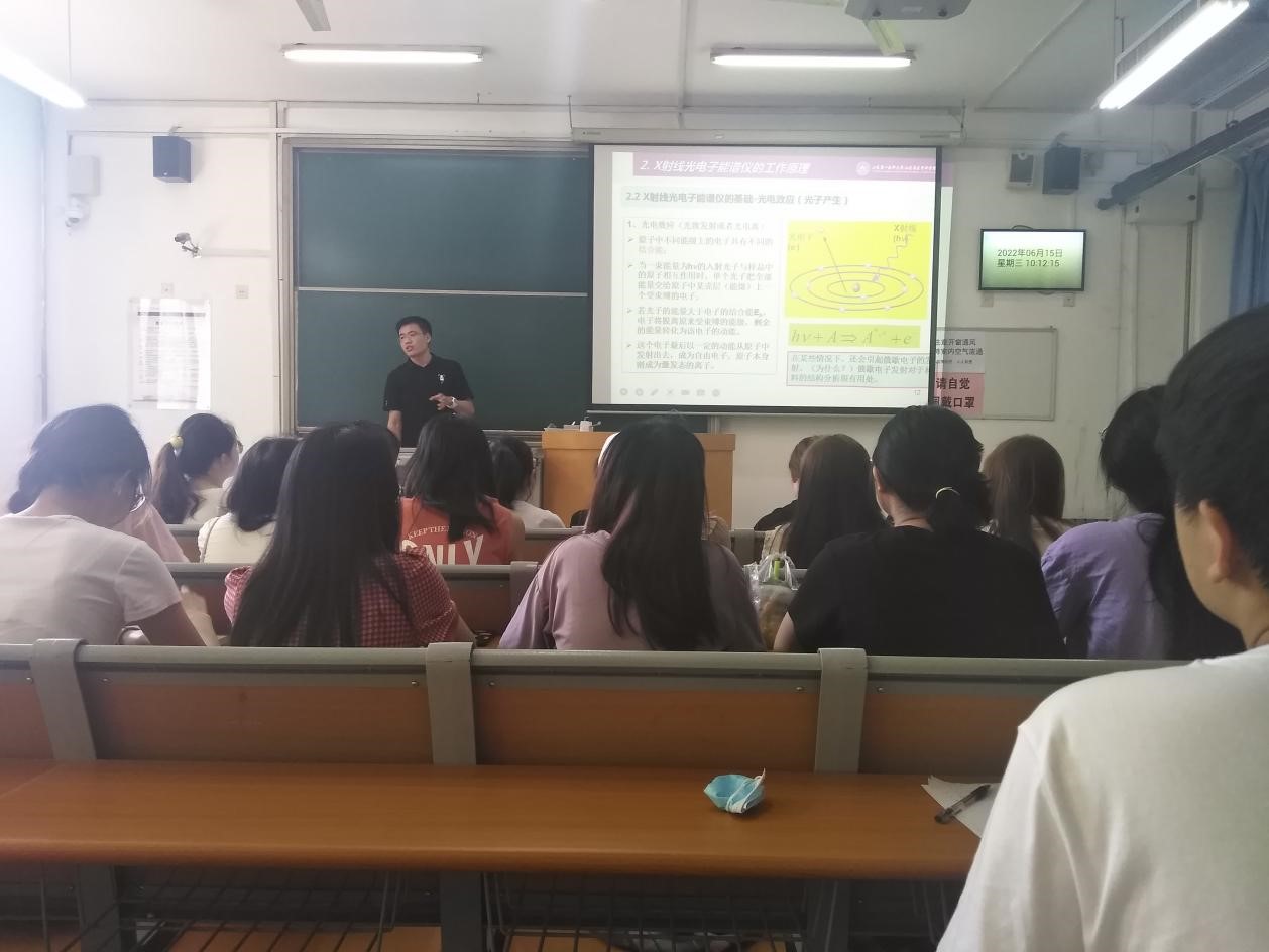 教工第四支部的两位特聘人才—蒋如剑老师和孙晓老师,向同学们展示不同的现代分析测试技术手段以及各自领域的研究成果。