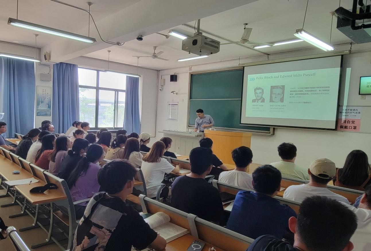 蒋如剑老师系统地介绍了X射线光电子能谱仪的结构、工作原理、图谱分峰处理以及实验方法,并且详细地向同学们介绍了他的团队研究方向—以仿生为基础的生物医药材料表面抗菌、糖尿病足伤口感染的治疗以及运动损伤的诊疗。孙晓老师系统地介绍了小动物MRI仪与MRI造影剂,关于核磁技术的发展、MRI仪的作用与原理,并且详细介绍了其团队中本科生的学术研究开展情况。两位老师均表示非常欢迎应用化学专业员工与其一起进行科学学术研究。两位老师学术修养深厚,以诙谐、轻松地方式讲授知识并且表达了对应化员工极大的喜爱,在同学们扎实基础化学知识的基础上,又极大地提高了同学们对于学术研究的向往与崇拜,并且极大的扩宽了应用化学学子的眼界,给同学们上了一堂难忘的启发课。