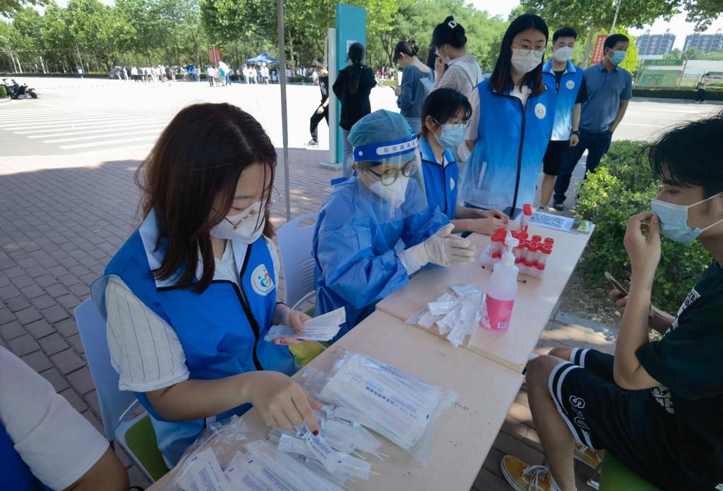 2018级制药工程本科一班贠相泽同学在第一时间加入到了党员抗疫志愿者服务队伍中,主要负责核酸检测值班编组、发放抗原检测试剂、分发物资、清理垃圾等。天气炎热,他每天都提前到达检测场所,做好一切准备工作,尽管每天感到疲惫和劳累,但他说:“公司和老师给了我振翅高飞的力量,给了我政治生命,为母校站好最后一班岗是我留给山一大的最好的纪念。”